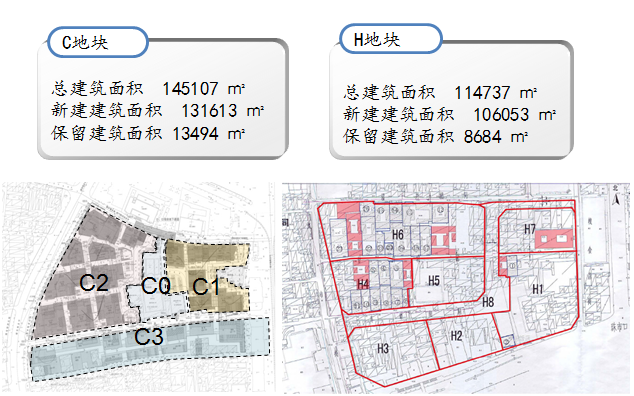 項(xiàng)目由C、H兩個地塊組成,東至珠寶市糧食店街,西至煤市街,項(xiàng)目通過一二級聯(lián)動方式實(shí)施改造。