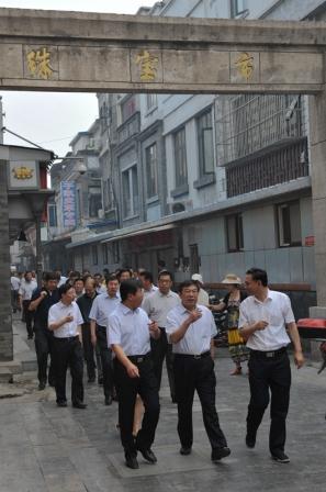 6月27日上午,北京市人大常委會(huì)主任杜德印同志來(lái)到大柵欄投資公司和大柵欄永興置業(yè)公司的“大柵欄·北京坊”、勸業(yè)場(chǎng)、珠寶市糧食店街、楊梅竹斜街等項(xiàng)目視察,隨后聽取了推進(jìn)大柵欄琉璃廠地區(qū)保護(hù)復(fù)興市人大代表建議辦理工作情況的匯報(bào)。市發(fā)改委主任張建東、西城區(qū)領(lǐng)導(dǎo)王寧、王少峰、蘇東、王旭、李巖等同志以及大柵欄琉璃廠建設(shè)指揮部、大柵欄街道和廣安控股主要領(lǐng)導(dǎo)陪同視察。