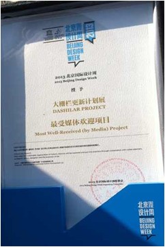大柵欄榮獲2013北京國際設(shè)計(jì)周兩項(xiàng)殊榮