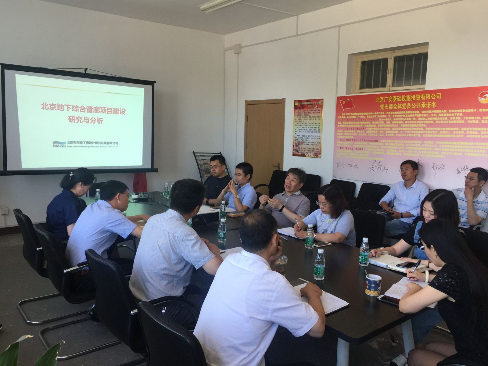 為綜合利用城市道路地下空間資源,積極探索舊城區(qū)基礎(chǔ)設(shè)施建設(shè)新模式和新方法,更好服務(wù)西城區(qū)政府“十三五規(guī)劃”建設(shè)要求,打造智慧城市、海綿城市,精準(zhǔn)服務(wù)首都功能,為西城區(qū)的城市更新服務(wù)作出更大貢獻(xiàn)。廣安基礎(chǔ)公司積極響應(yīng)國務(wù)院以及住建部、發(fā)改委、財(cái)政部等相關(guān)部門關(guān)于推進(jìn)城市地下綜合管廊建設(shè)相關(guān)指示精神,充分利用微信平臺(tái)、座談會(huì)等各種方式,組織開展了一系列相關(guān)業(yè)務(wù)學(xué)習(xí)活動(dòng)。