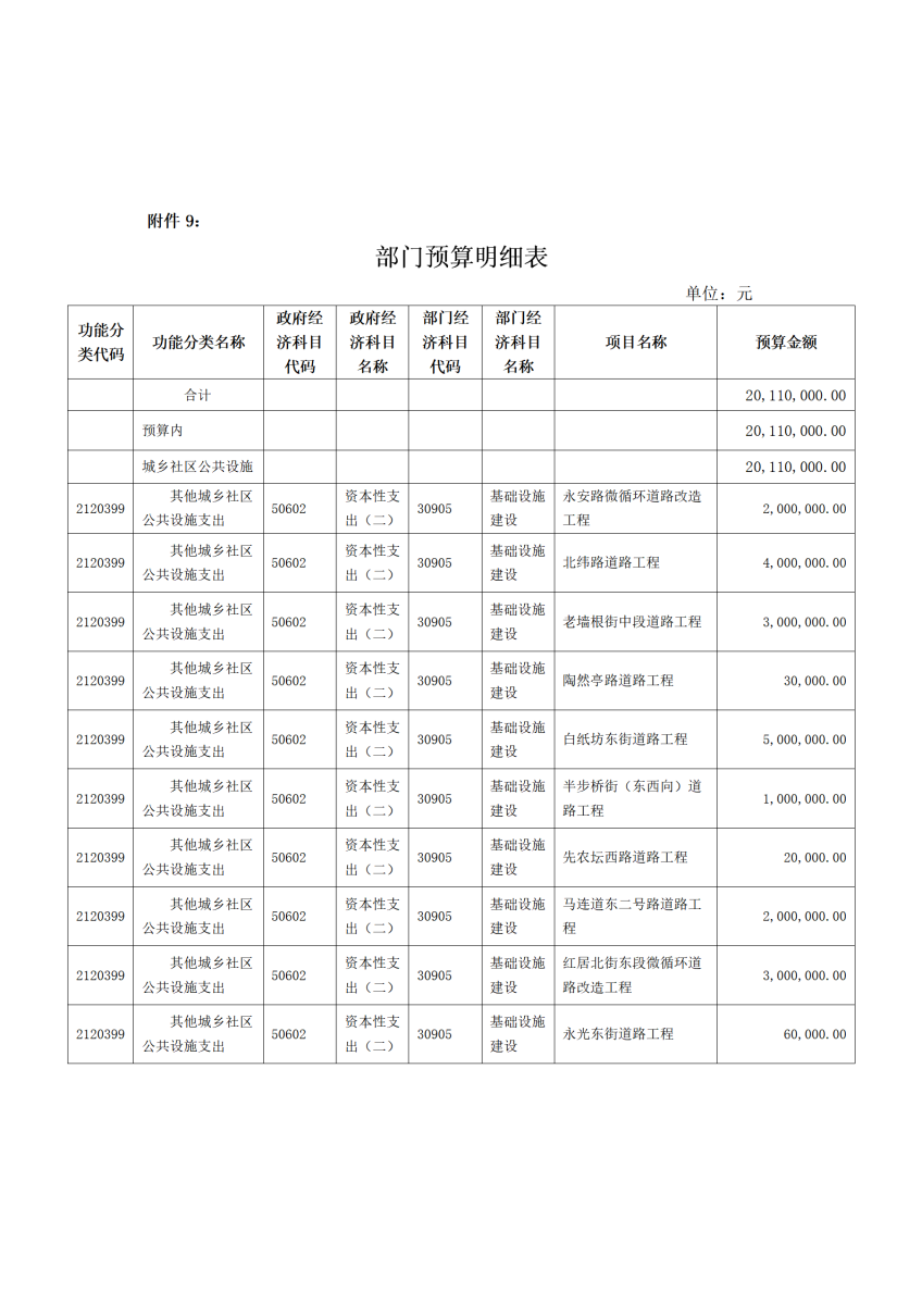 附件9、部門預算明細表